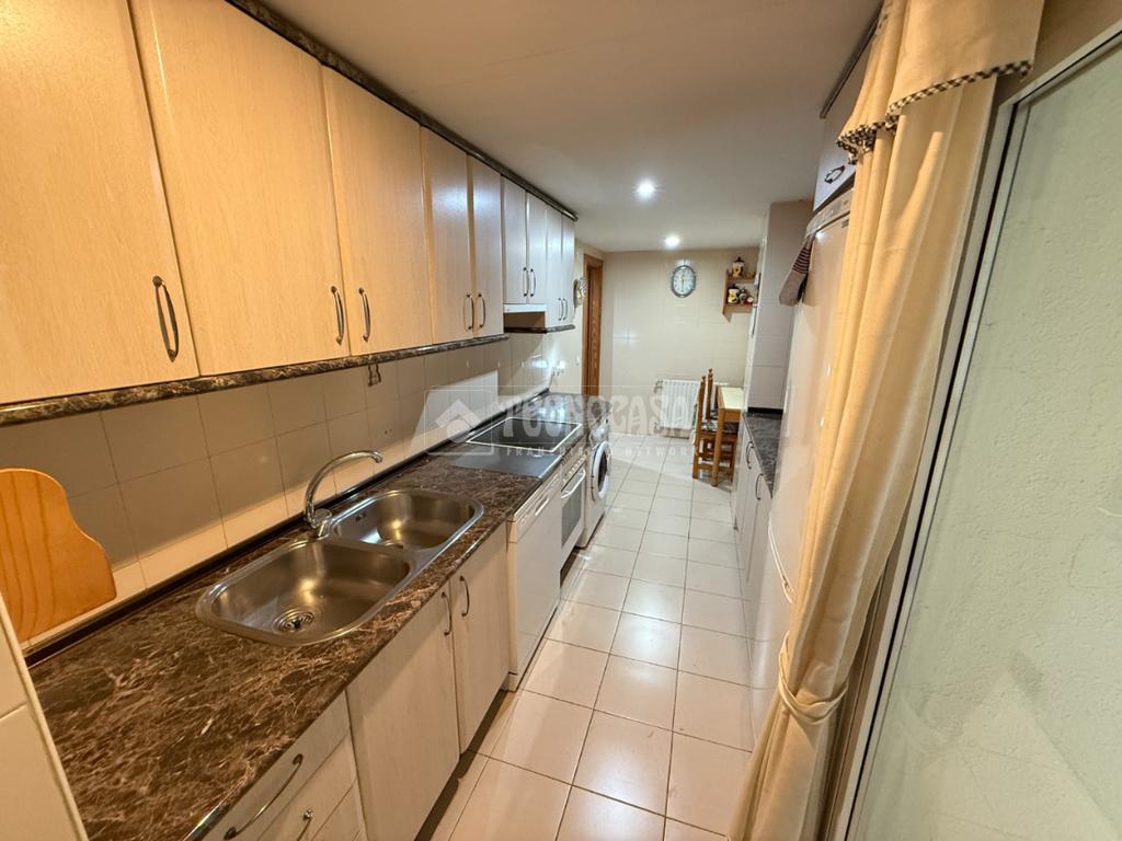 La cocina es independiente y cuenta con acceso a una amplia terraza tendedero, perfecta como zona de lavado y almacenaje adicional.